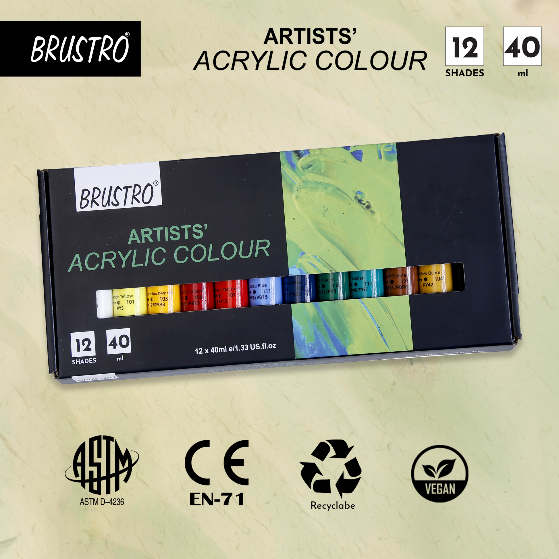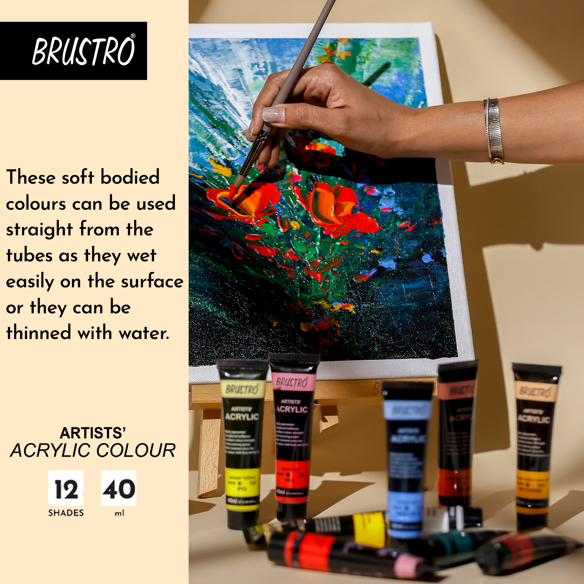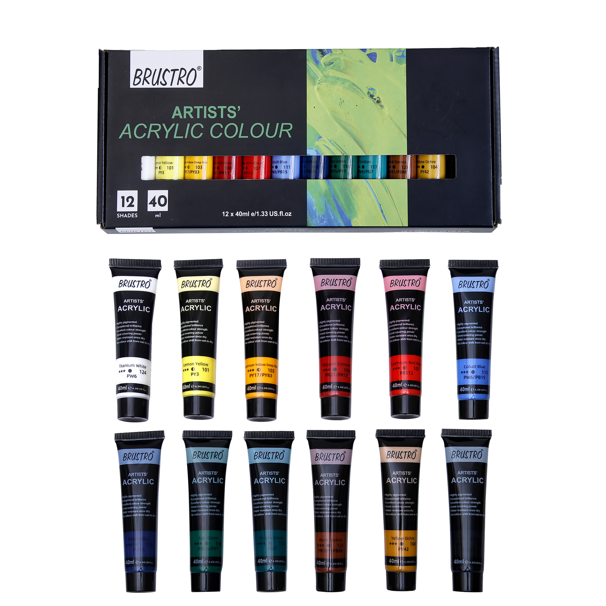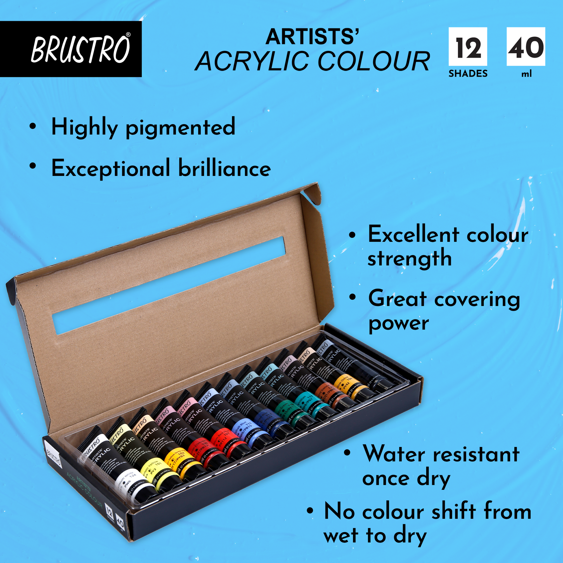 - Brustro Acrylic Colour Set of 12 and 24 offers vibrant, soft-bodied colours with smooth application. Perfect for artists of all levels, it provides endless creative possibilities on canvas, paper, and cardboard.