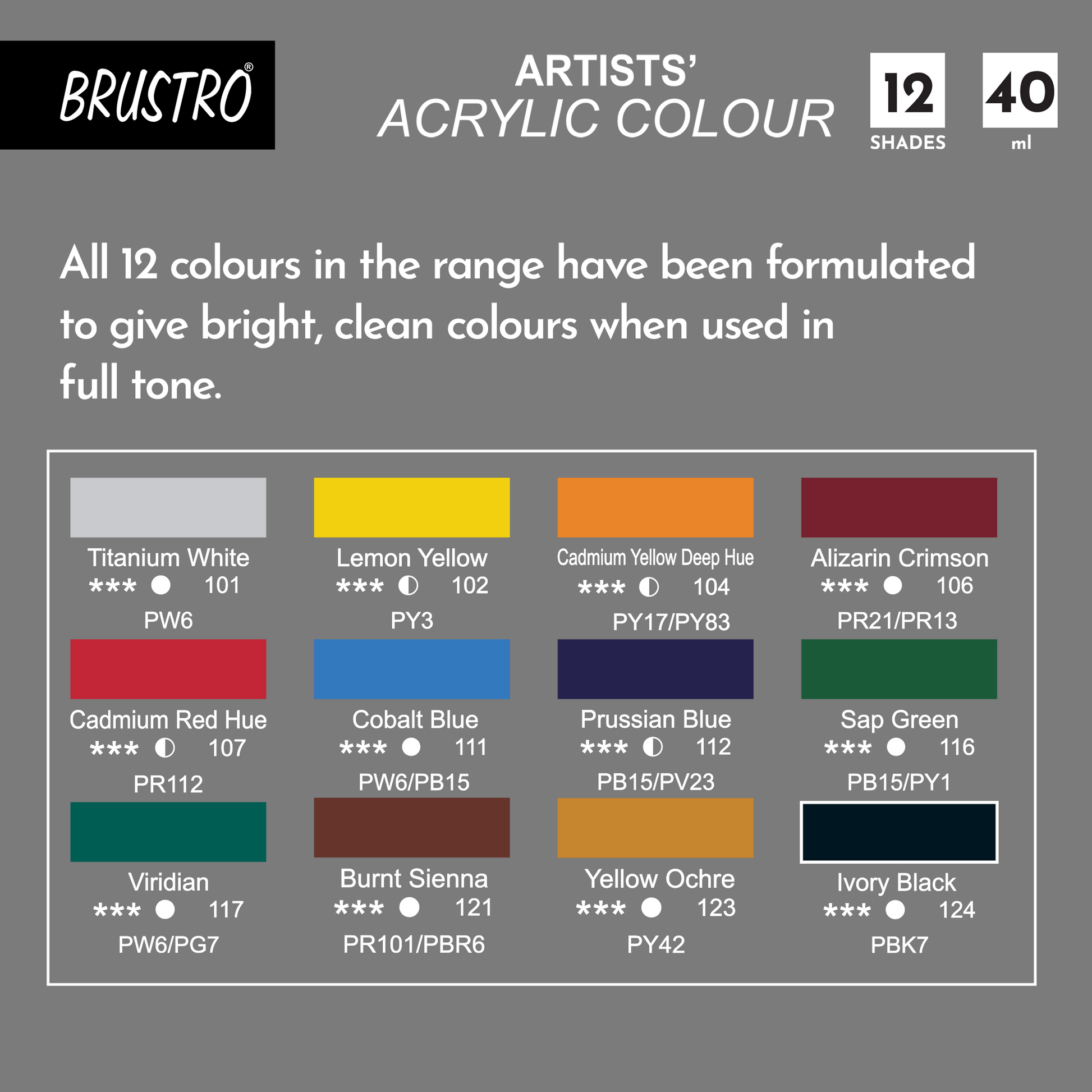 - Premium Quality: Brustro ensures quality and durability, perfect for acrylic painting techniques like layering, washes and texture building.