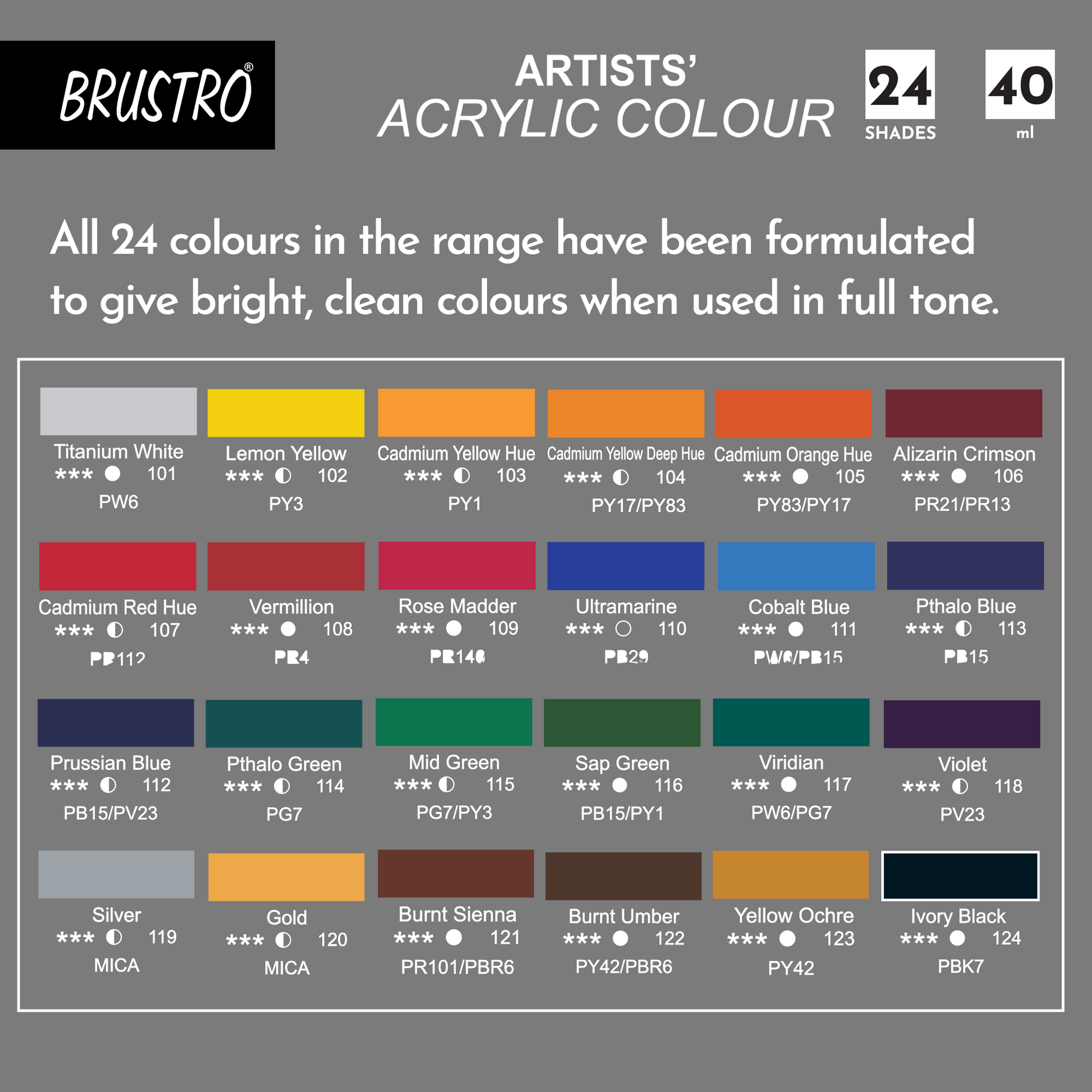 - Premium Quality: Brustro ensures quality and durability, perfect for acrylic painting techniques like layering, washes and texture building.