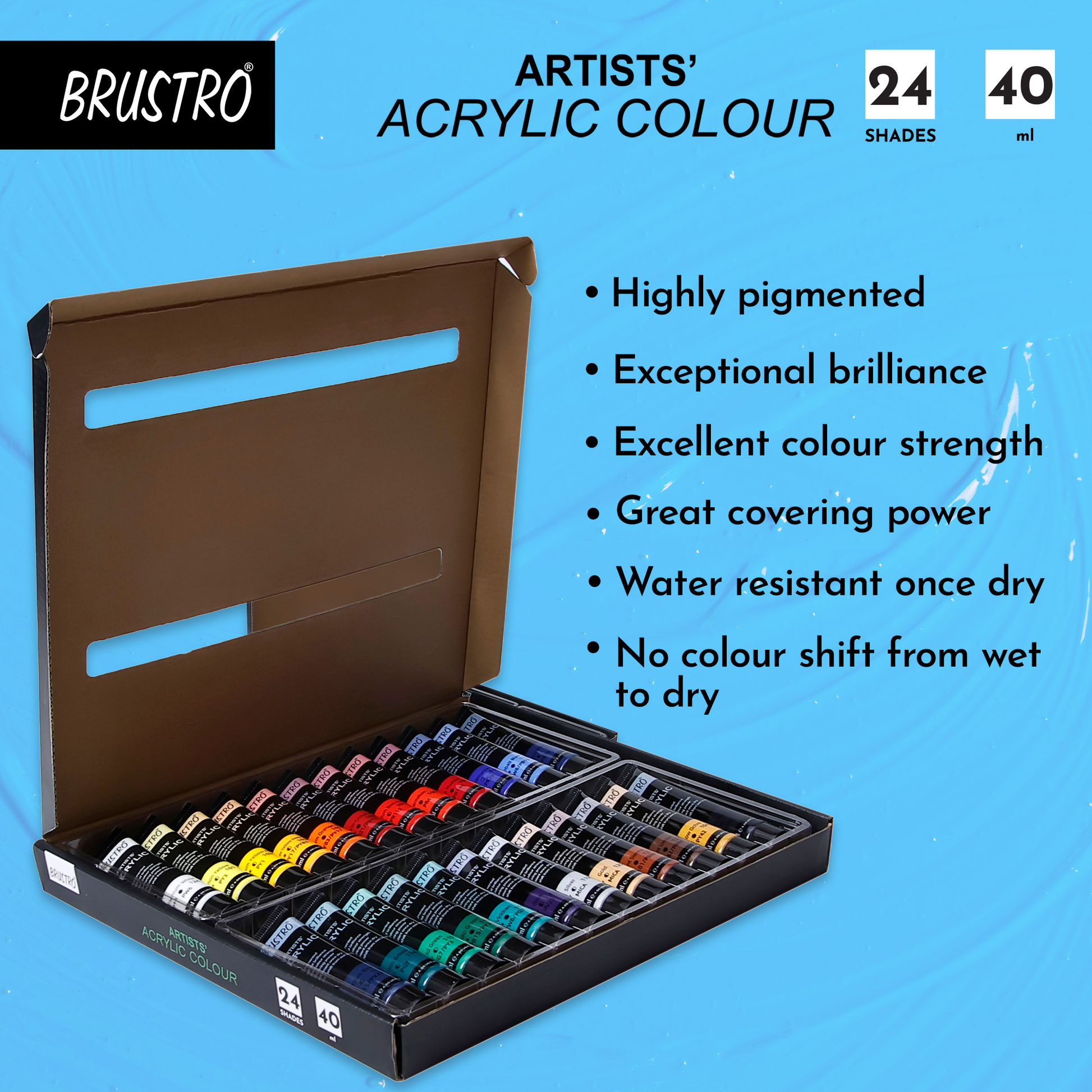 Experience the vibrancy and versatility of Brustro Artists' Acrylic Colours. With 24 carefully curated shades, this set is designed for artists of all levels, from hobbyists to professionals. Brustro Acrylics offer bright, clean and highly pigmented colours that can be used straight from the tube or diluted with water for a variety of painting techniques. Their soft-bodied texture allows smooth application, ensuring excellent coverage on conventional art surfaces like paper, cardboard and canvas. Whether you’re exploring bold strokes or intricate details, these intermixable colours provide endless possibilities to bring your creativity to life.