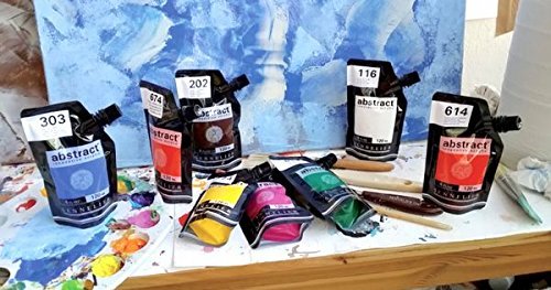Allow us to Formally Introduce you to abstract: An Innovative Acrylic system in revolutionary packaging by Sennelier. You can paint straight out of the extra sturdy and totally squeezable pouch on any surface. Large transparent window on the pouch displays actual paint inside the pouch. As it fits comfortably into your hand it’s much easier to use. The pouch is so strong that you can take it with you wherever you go and, unlike a tube, it can stand up to pressure even if you accidentally step on it! Abstract is composed of 34 single pigment colours among the range’s 60 shades. • 36 SATIN FINISH COLOURS • 12 HIGH GLOSS COLOURS * 6 IRIDESCENT COLOURS • 6 FLUORESCENT COLOURS
