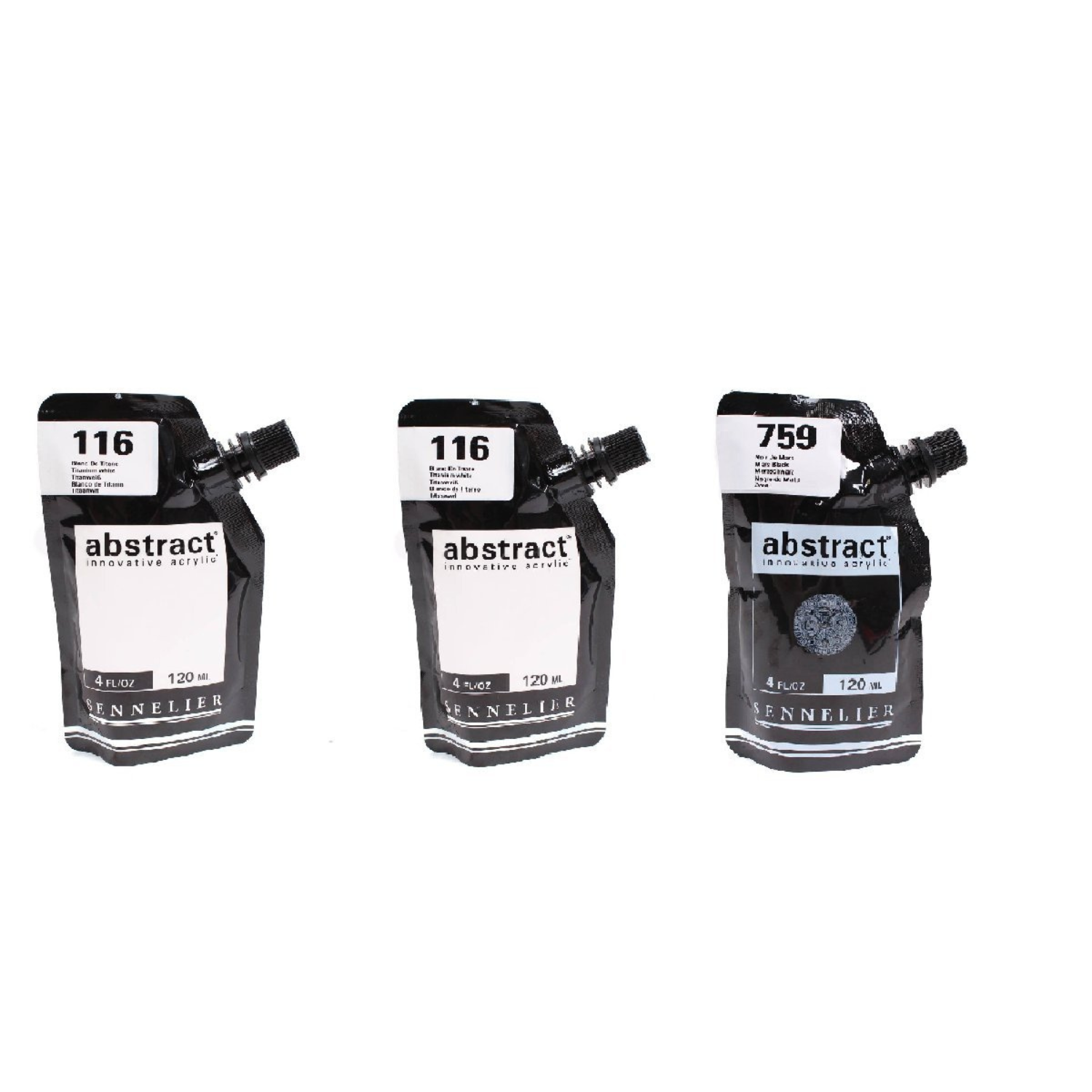 Sennelier Abstract Acrylic Artist Paint Pouch 120 ml Combo Pack ( Contains 2 Titanium White and 1 Mars Black)