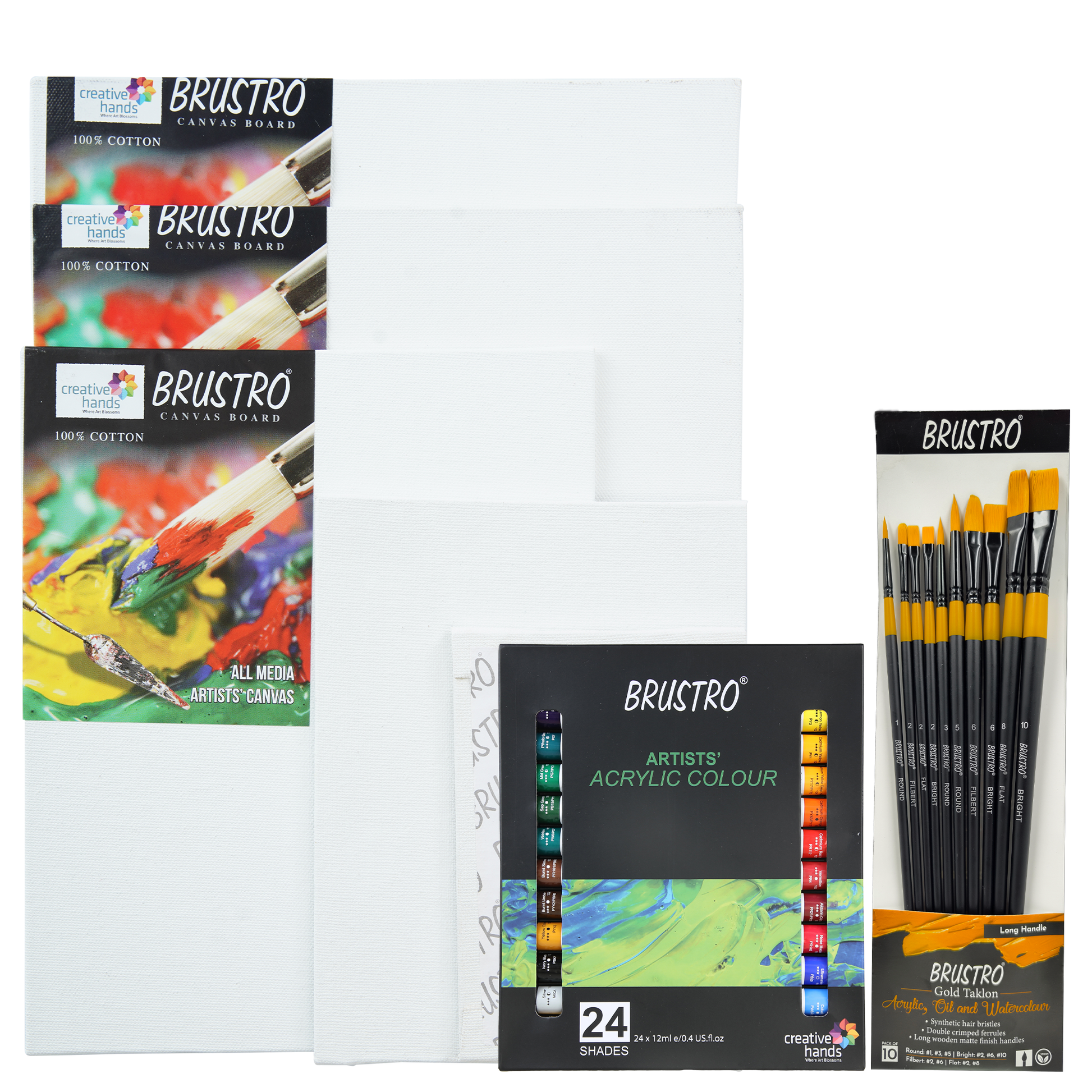Set of 24 premium acrylic colour 12 ml tubes. Adheres to a great variety of surfaces like paper, canvas, wood and earthenware. Best price-quality ratio. These Acrylic Paints are perfect to create textured effects, brush marks and palette knife impressions.