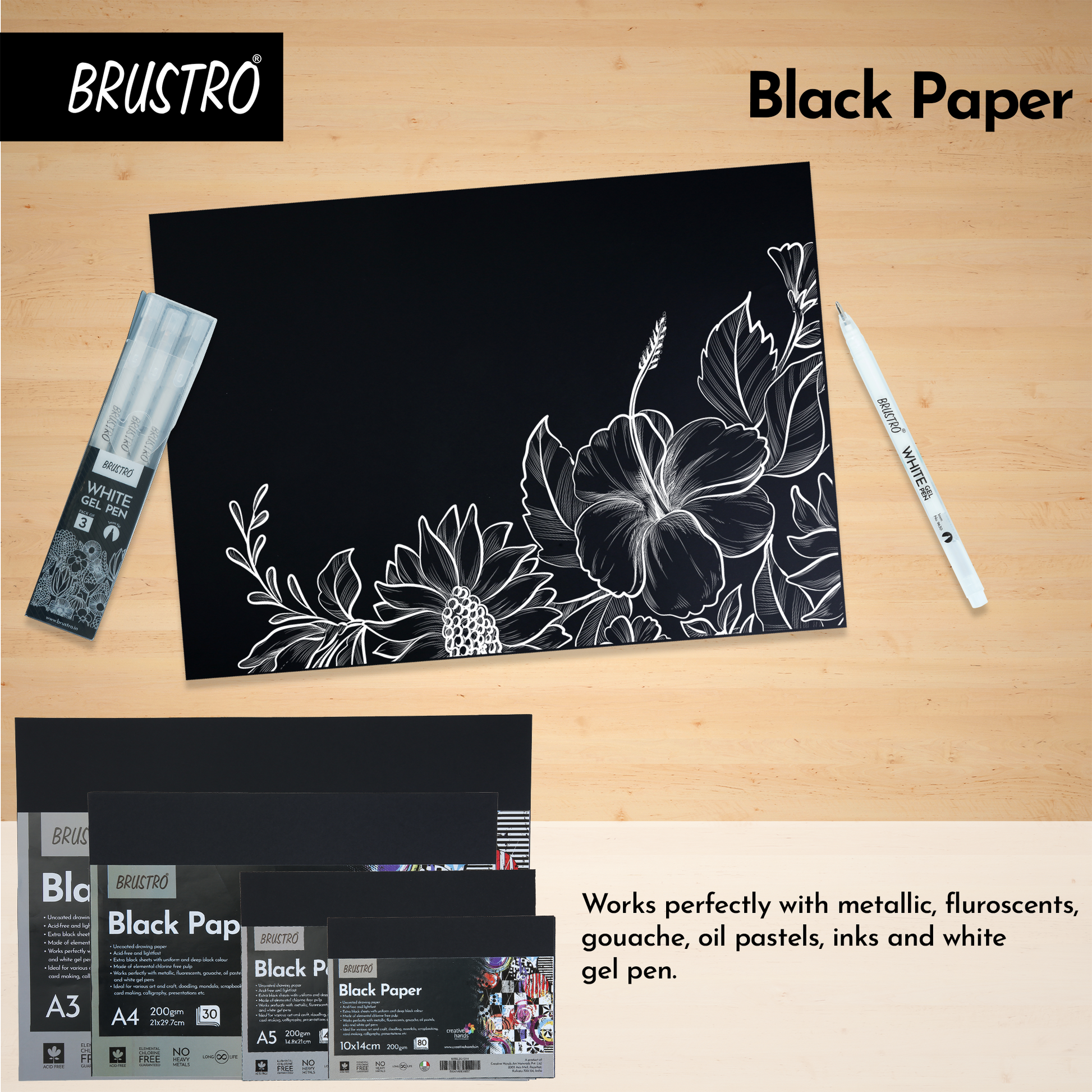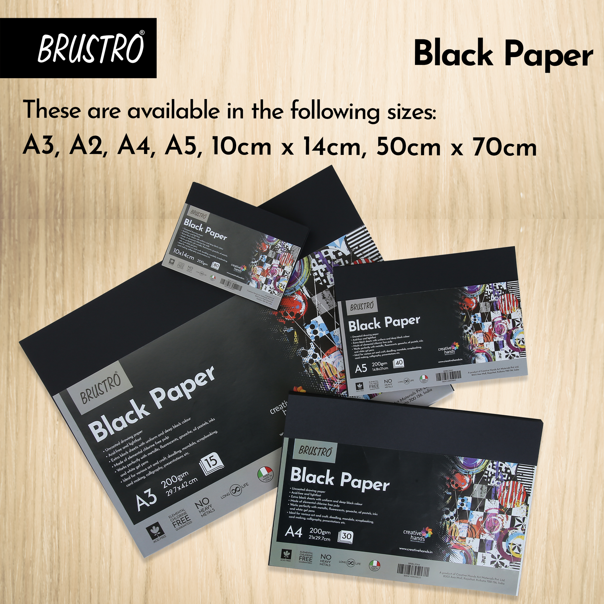 These Brustro Black Paper are Uncoated drawing paper. are Acid-free and lightfast black papers, Extra black sheets with uniform and deep black colour. Made of elemental chlorine free pulp. Works perfectly with metallic, fluorescents, gouache, oil pastels, inks and white gel pens. Ideal for various art and craft, doodling, mandala, scrapbooking, card making, calligraphy, presentations etc. Made in Italy,