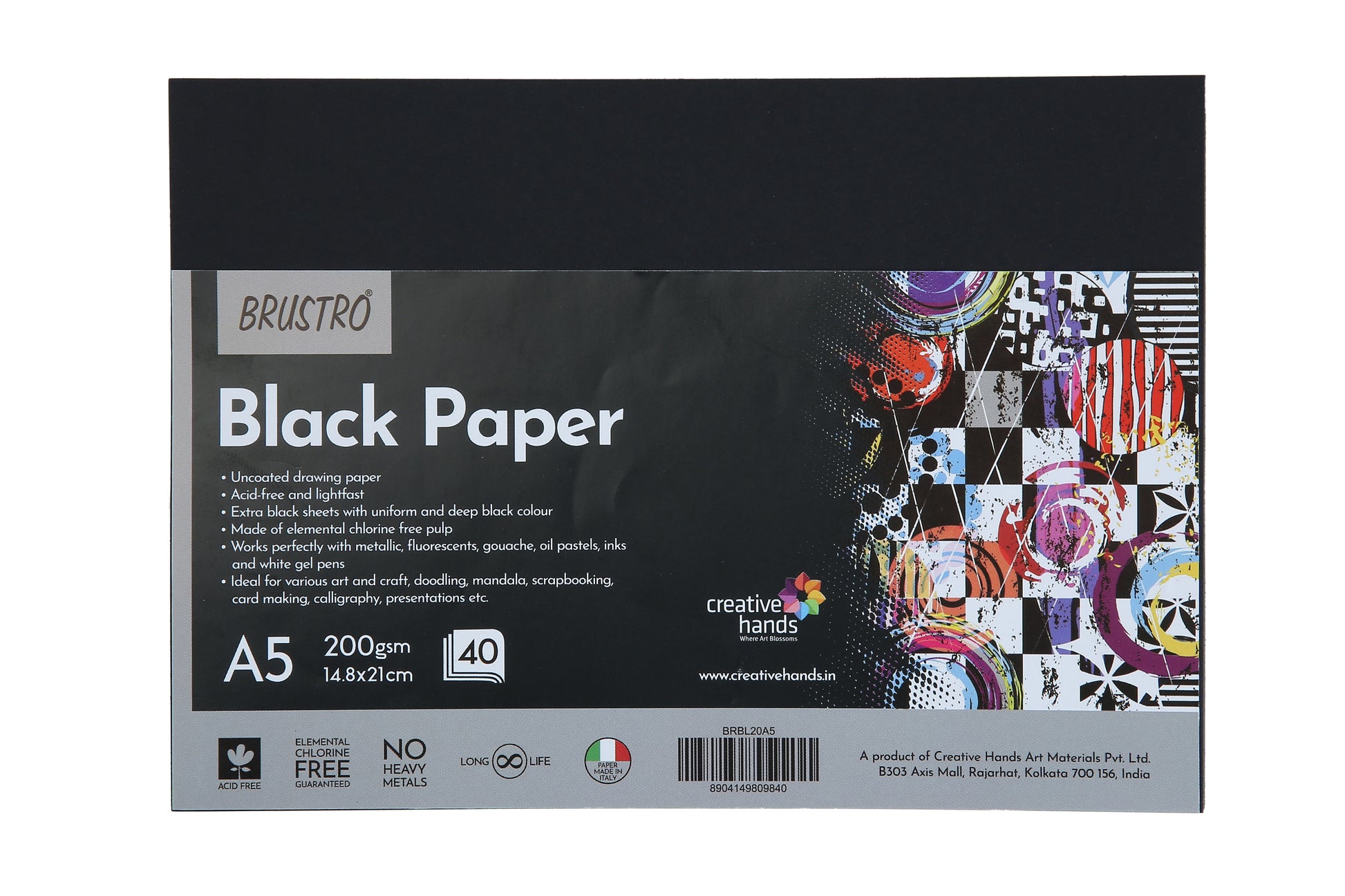These Brustro Black Paper are Uncoated drawing paper. are Acid-free and lightfast black papers, Extra black sheets with uniform and deep black colour. Made of elemental chlorine free pulp. Works perfectly with metallic, fluorescents, gouache, oil pastels, inks and white gel pens. Ideal for various art and craft, doodling, mandala, scrapbooking, card making, calligraphy, presentations etc. Made in Italy,
