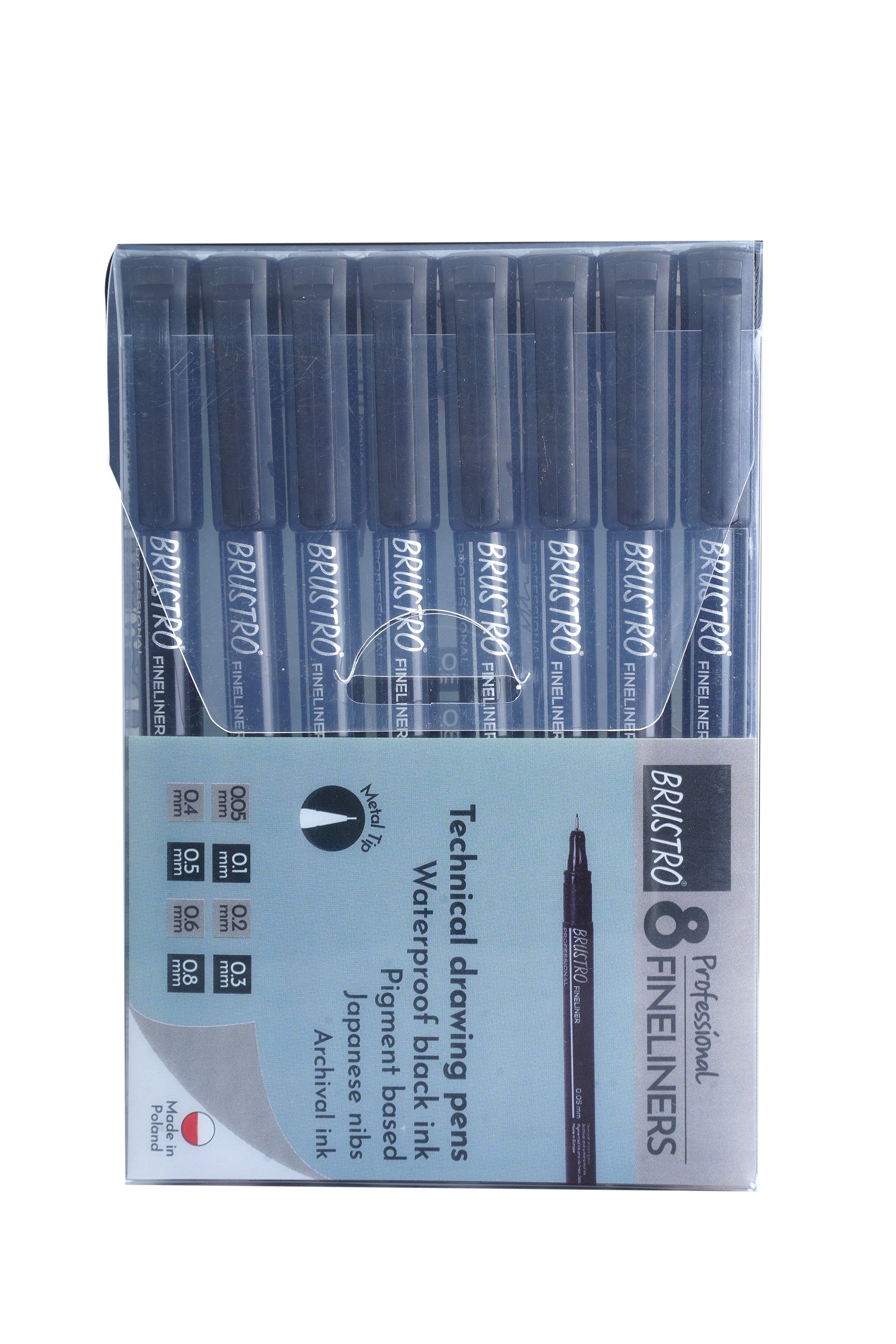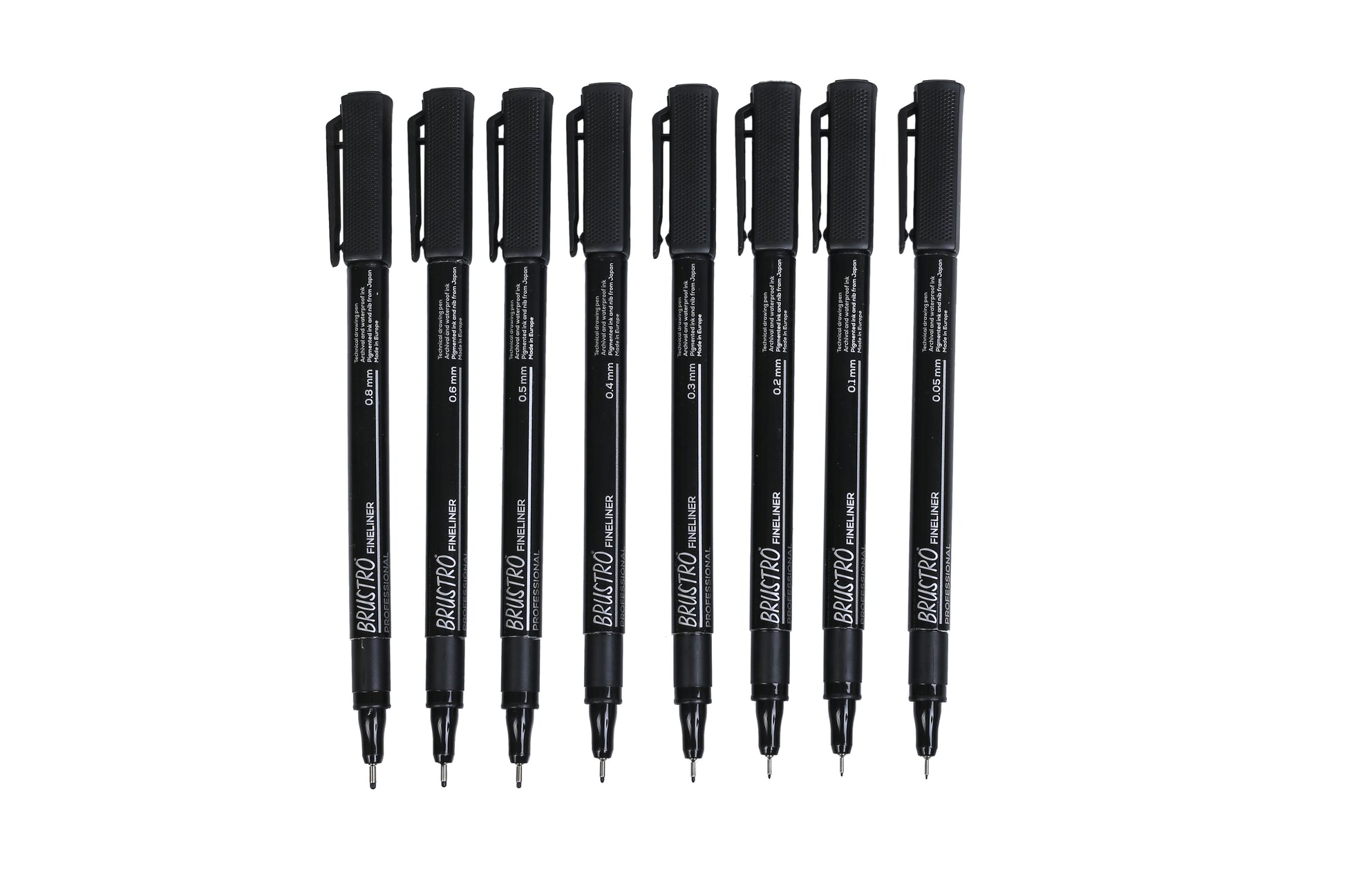 The disposable fine liners using archival pigmented black ink is available in 8 point sizes and 3 coloured fine liners in 0.5mm size. The ink is waterproof and lightfast, ensuring that your drawings won't bleed when exposed to water and won't fade with time or in sunlight. Brustro Professional Pigment Based Fine Liners make an excellent disposable alternative to the more expensive refillable technical pens, so you'd be hard-pressed to tell the difference. Ideal for all of your fine inking needs.