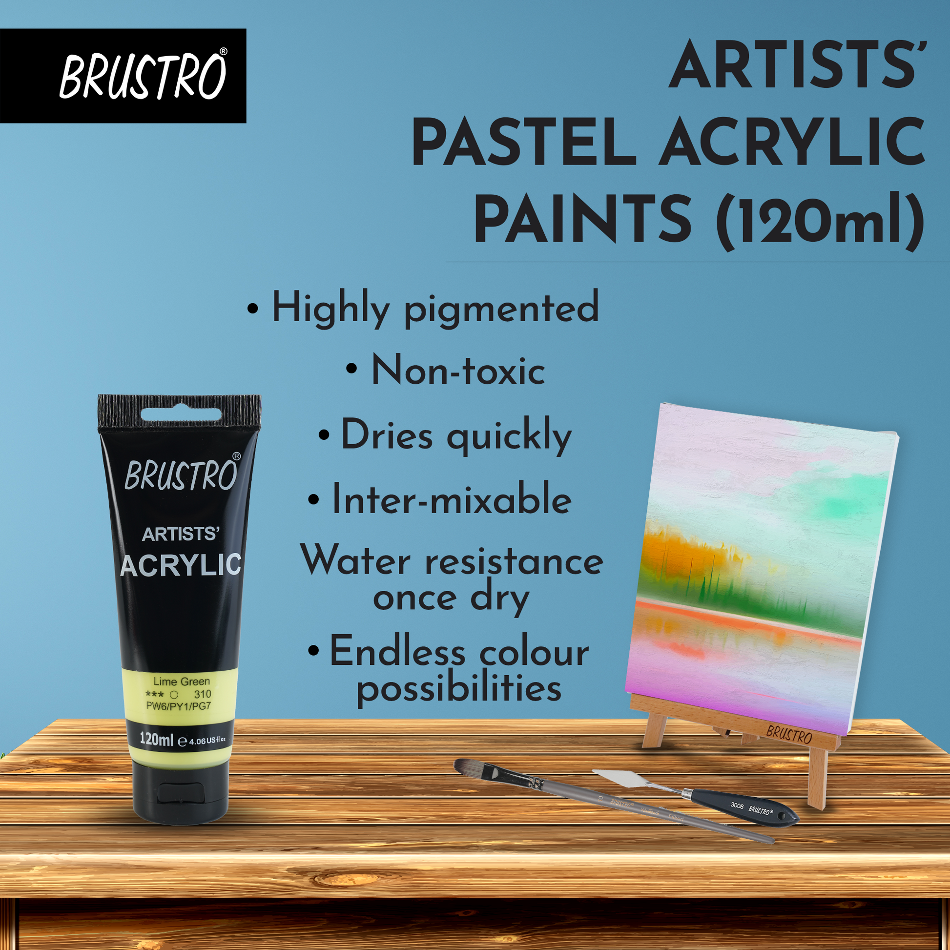 Brustro acrylics are affordable colours that can be used to paint on all conventional art surfaces such as paper, cardboard, canvasses etc. These soft bodied colours can be used straight from the tube as they wet easily on to the surface or they can be thinned with water. All the colours are inter-mixable giving endless colour possibilities. Best price quality ratio. These Acrylic Paints are perfect to create textured effects, brush marks and palette knife impressions.