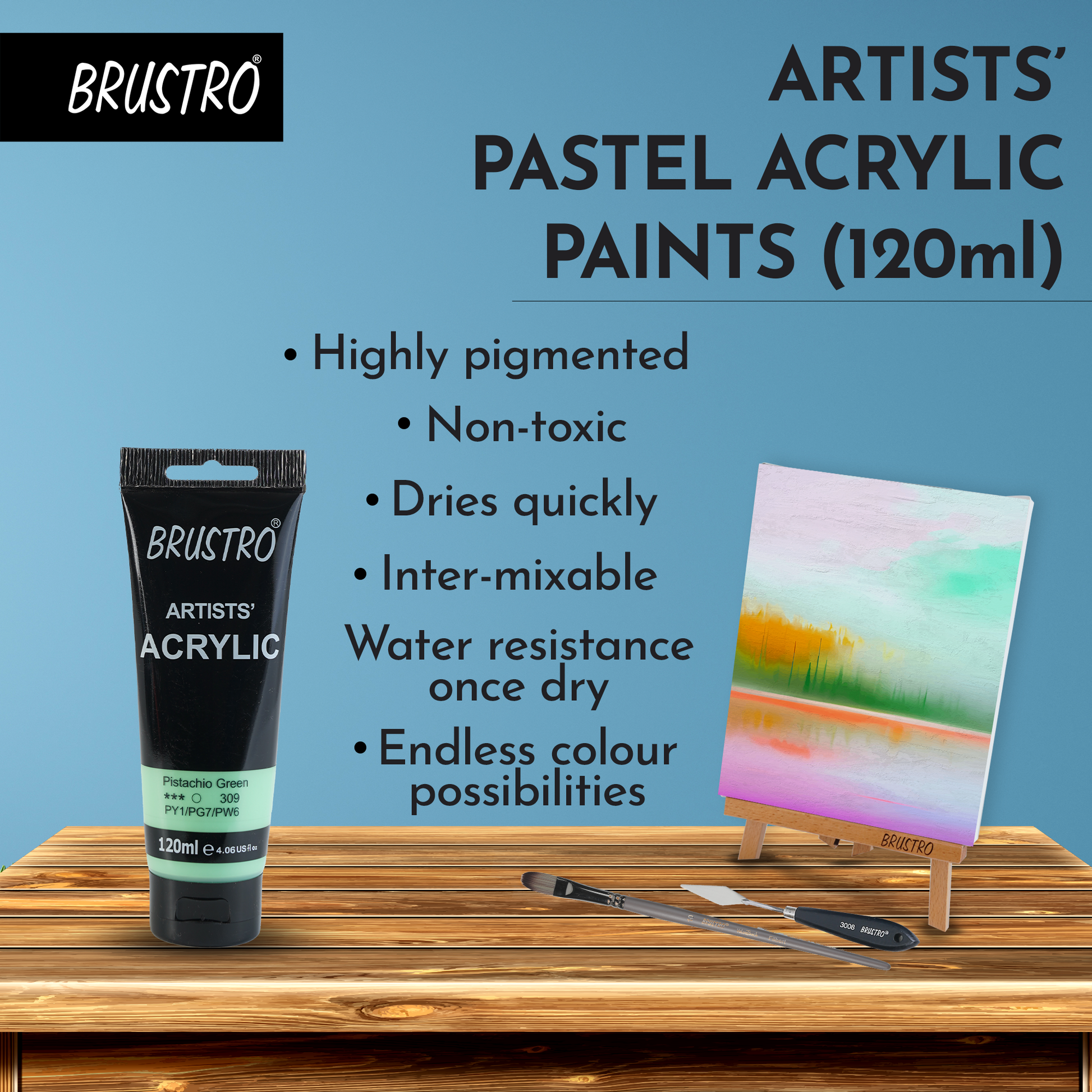 Brustro acrylics are affordable colours that can be used to paint on all conventional art surfaces such as paper, cardboard, canvasses etc. These soft bodied colours can be used straight from the tube as they wet easily on to the surface or they can be thinned with water. All the colours are inter-mixable giving endless colour possibilities. Best price quality ratio. These Acrylic Paints are perfect to create textured effects, brush marks and palette knife impressions.