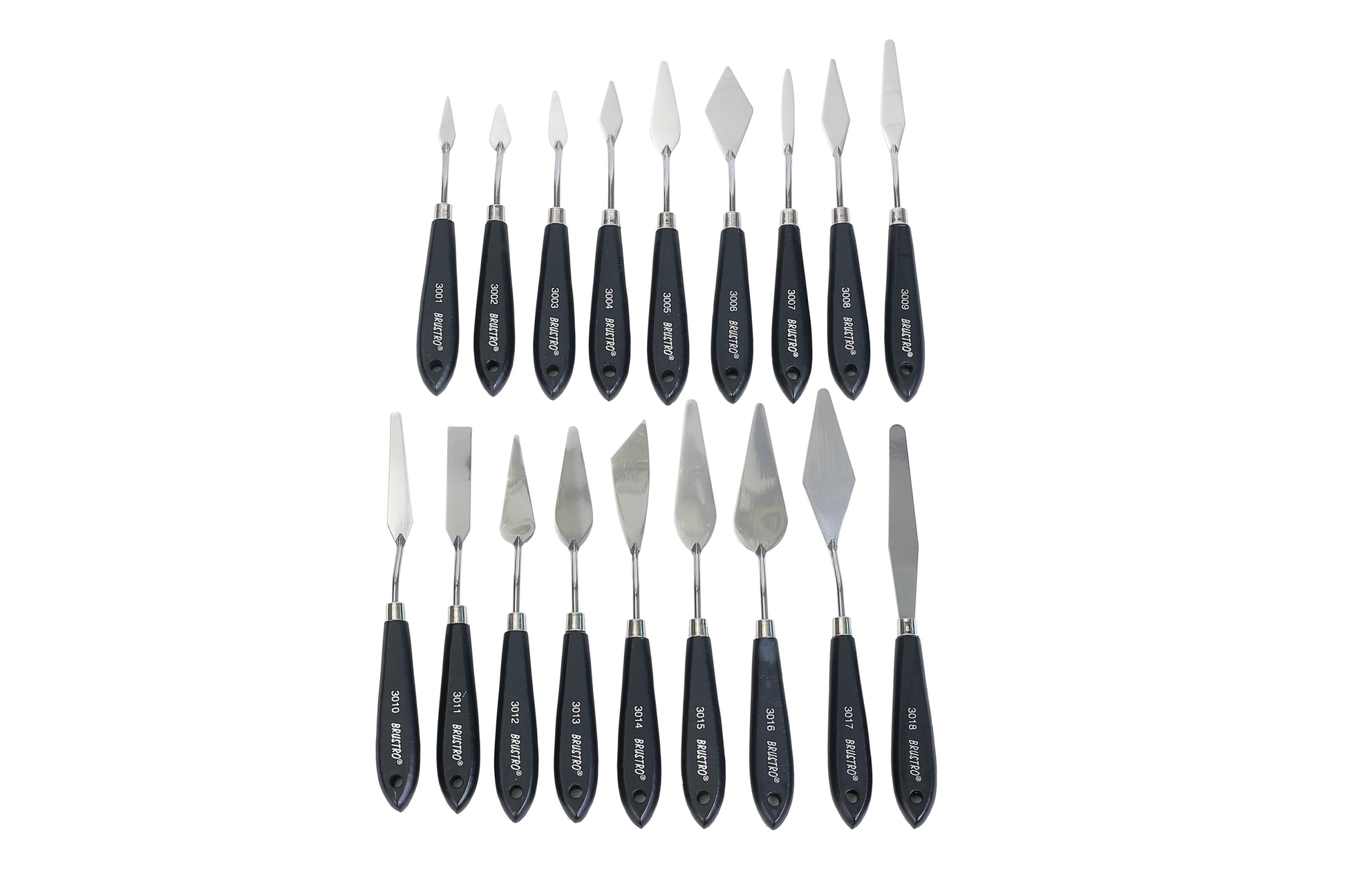 The ergonomically designed handles of Brustro Artists’ Palette Knives add increased comfort and grip to every application. Perfect for professional artists, creative hobbyists, art students and art teachers.