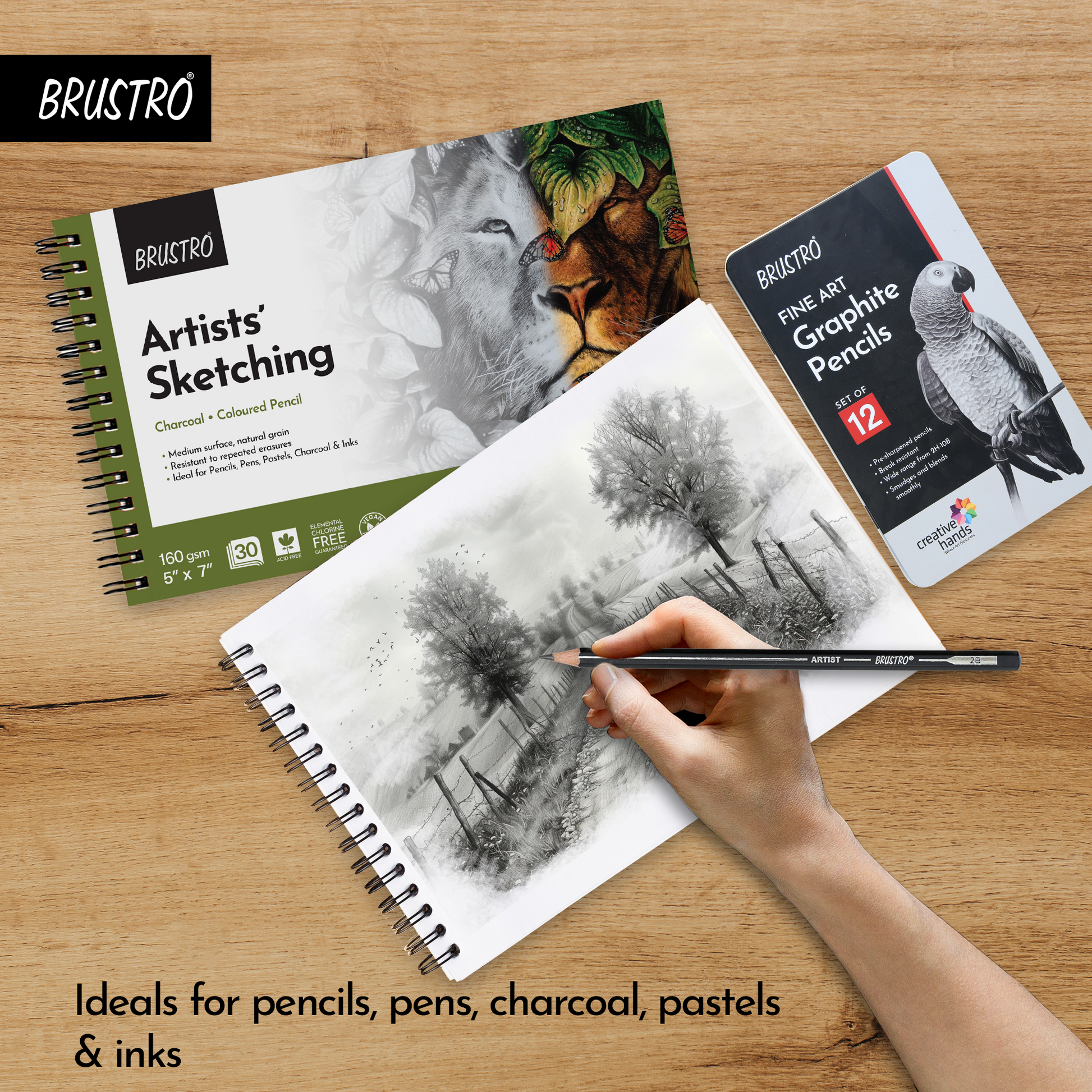 - Premium 160 GSM Paper: Thick, durable sheets perfect for dry media like graphite, charcoal, pastel, and ink without bleed-through.