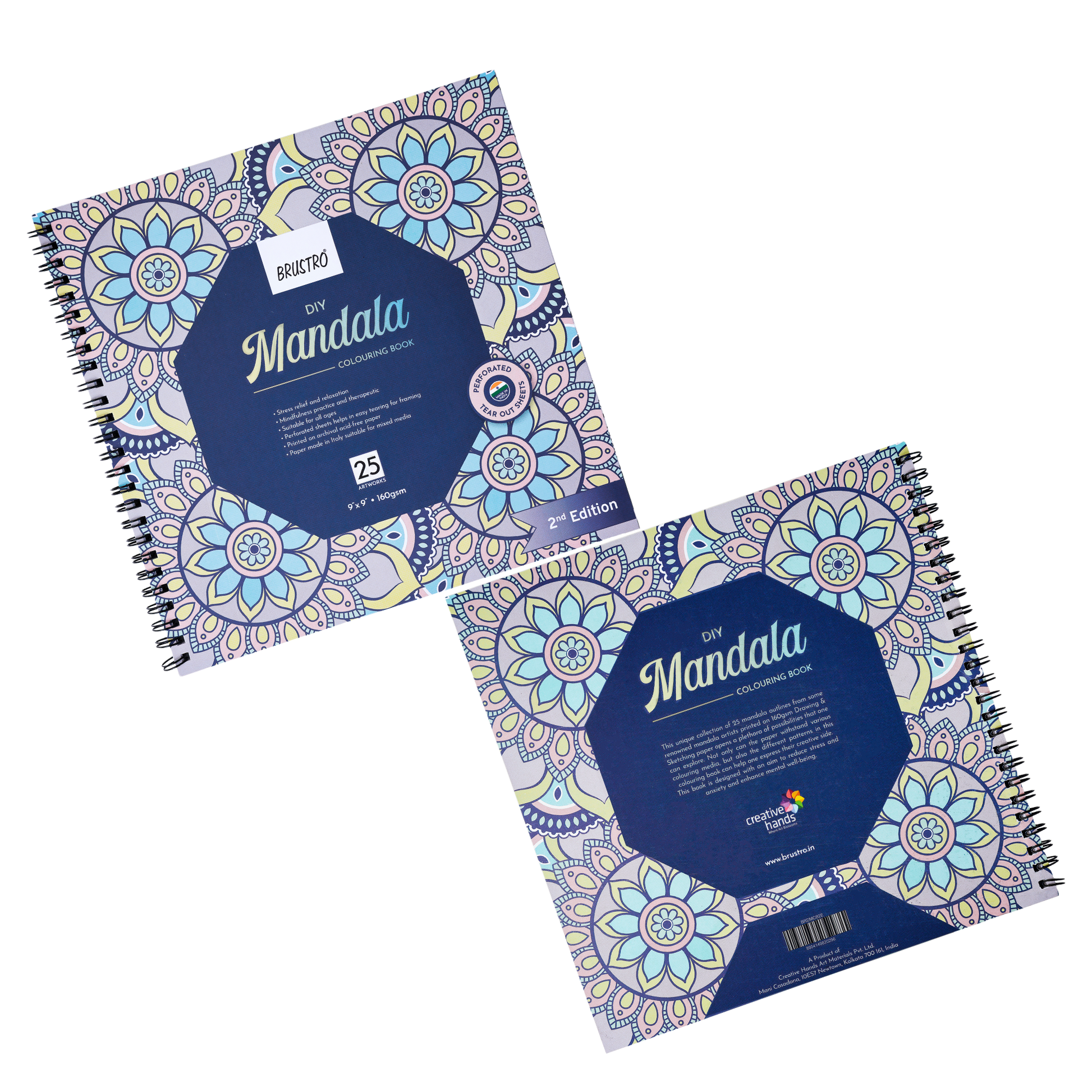 Discover the calming power of mandala art with the Brustro DIY Mandala Colouring Book – 2nd Edition, a thoughtfully curated collection of 25 intricate mandala artworks contributed by remarkable Indian artists. Printed on premium 160gsm Italian Drawing & Sketching paper, this edition is perfect for colouring enthusiasts, artists and mindfulness practitioners of all ages. Each page offers a unique and symbolic mandala design aimed at reducing stress and anxiety while fostering relaxation and inner balance. Whether you're using colour pencils, brush pens, watercolours, or fineliners, the acid-free and sized paper can handle it all. With perforated tear-out sheets, you can easily frame, gift, or display your finished art. Let each stroke become a journey into calmness, artistic joy and self-expression.