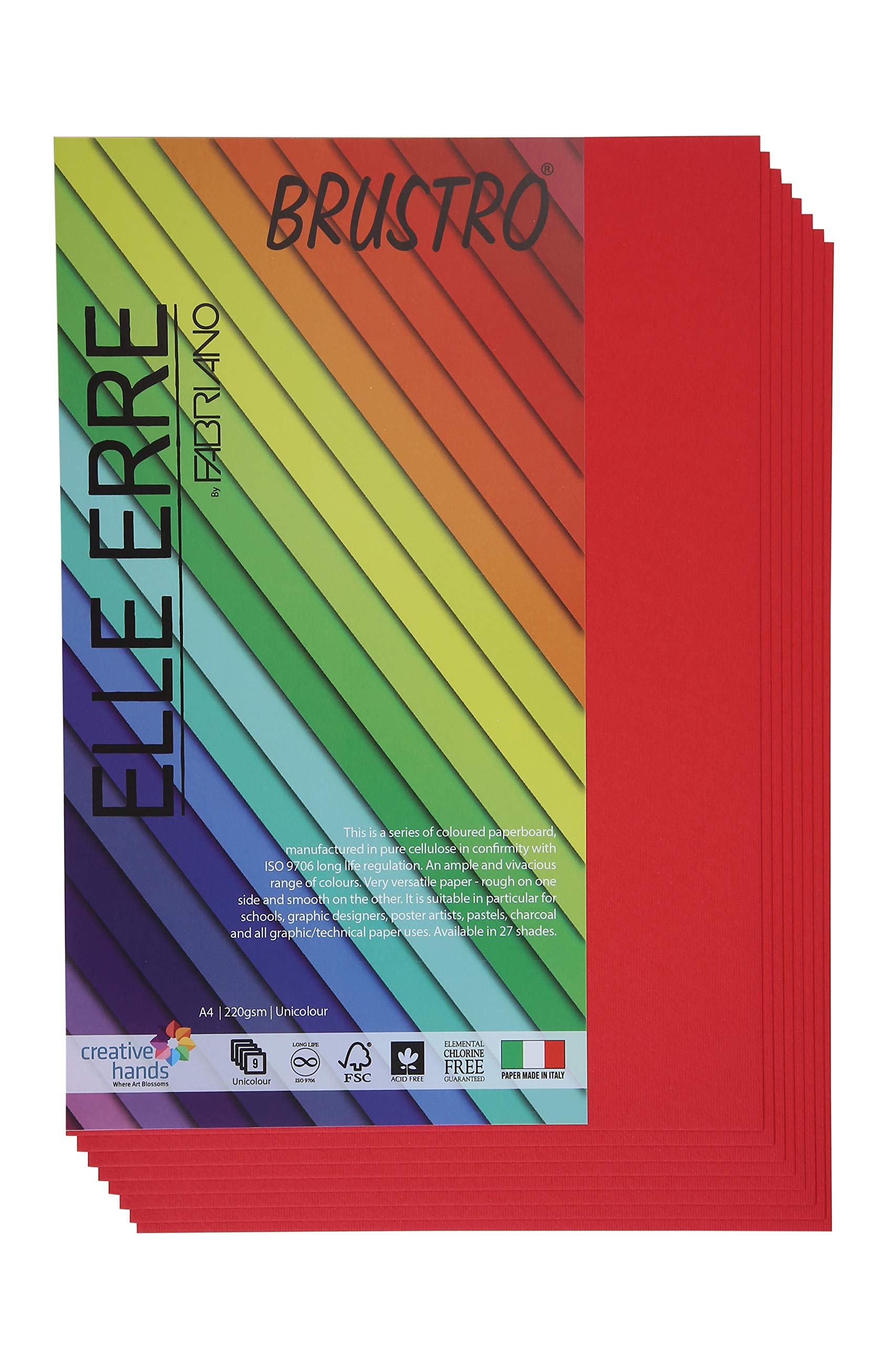 Fabriano Elle Erre A4, 220 GSM (9 Sheets)Rosso(Primary Red)Ideal for schools,graphic designers,poster artists with pastel,charcoal,calligraphy,pen