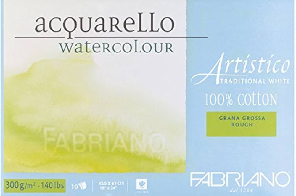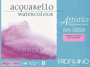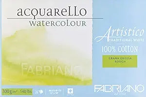 A classic white paper used by artists for centuries, this natural warm white paper is achieved without the use of optical brighteners. Papers are synthetically sized both internally and externally so that no animal by-products are used. Fabriano's Artistico papers are mould-made of 100% cotton and are acid-free/pH neutral and chlorine-free. Papers are luxurious yet durable and can handle lifting and scraping without compromising their integrity. Suitable for all water media, printmaking, digital printing, charcoal, pastel, and other drawing applications.