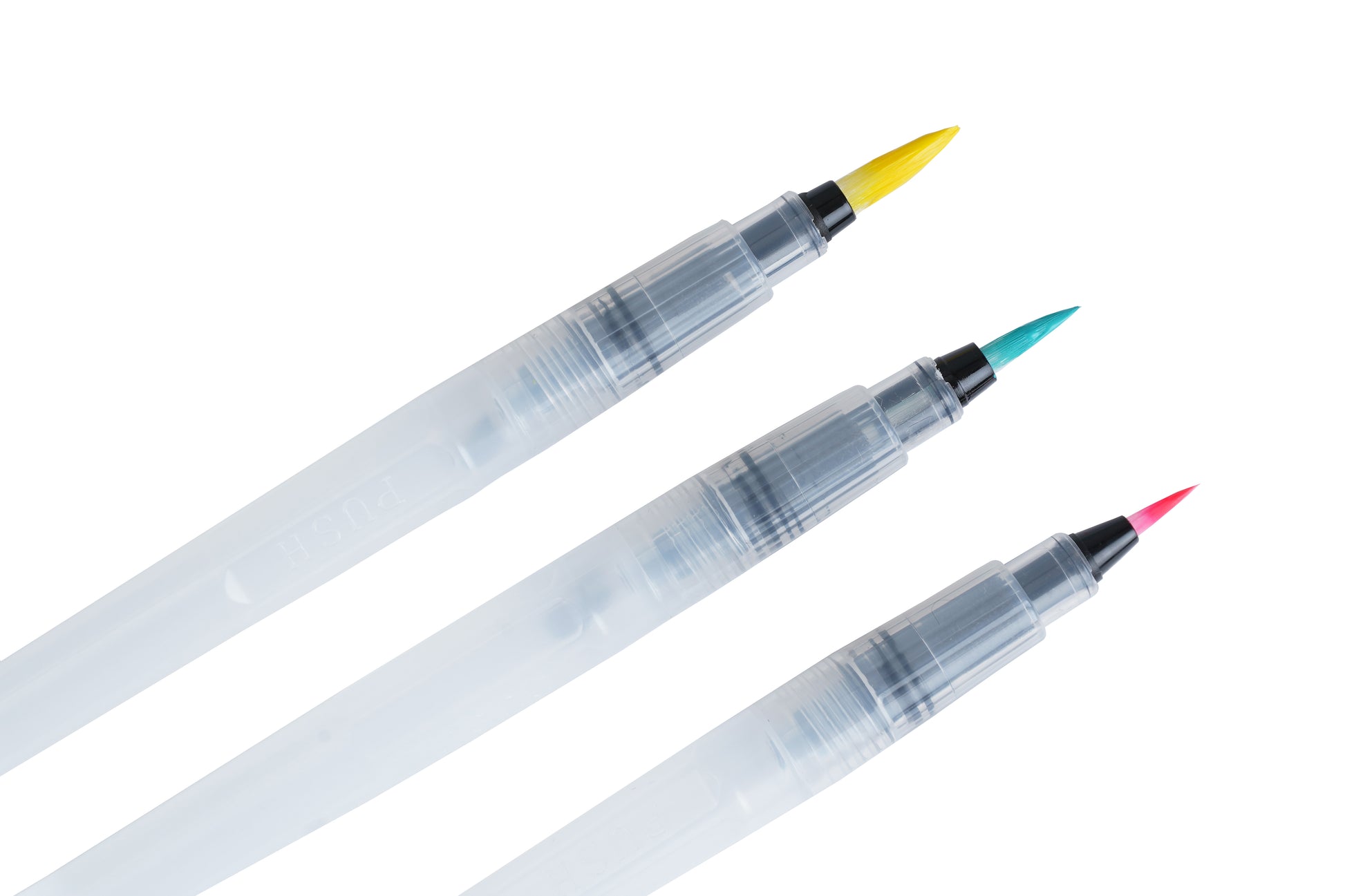 - DURABLE NYLON BRUSH TIP: Durable watercolor paint brushes available in Bold, Medium, and Fine point size. Give a sensitive response for delicate lines or pools of colors.