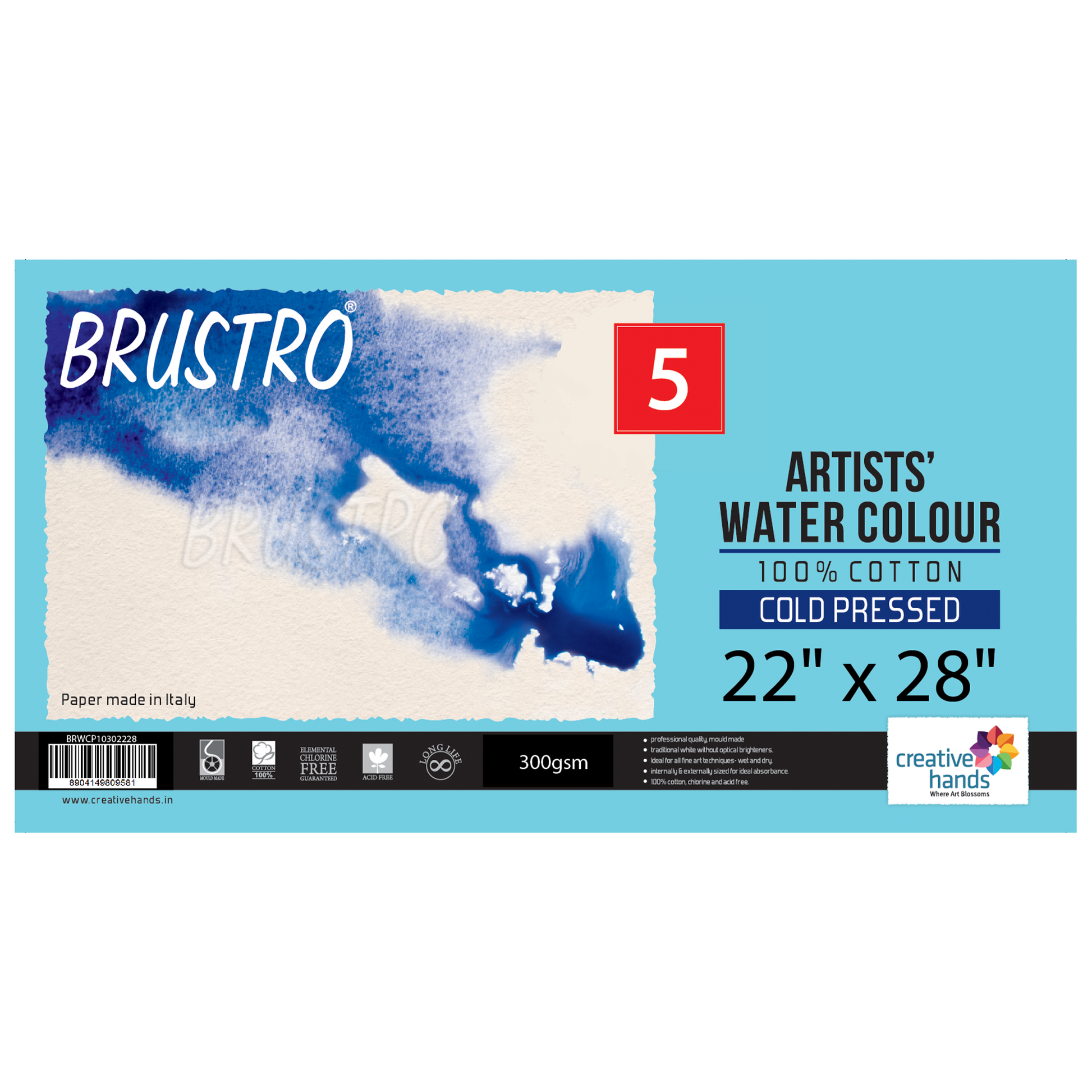 - Brustro Artists' Watercolour paper 100% cotton Cold Pressed 300 Gsm , size - 22" x 28" . 5 sheets