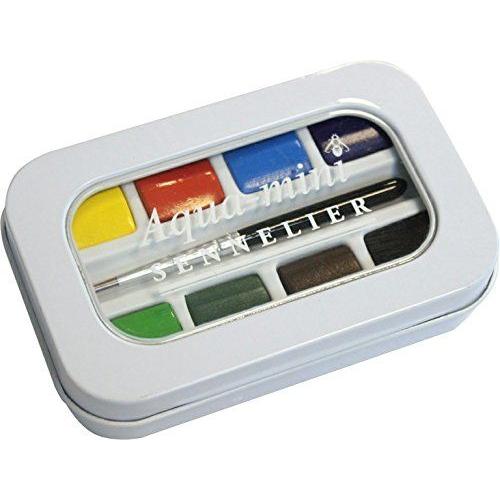 Sennelier Artists' Watercolor Aqua-Mini Set-8 Half Pans (MRP 1590) + Brustro Artists' Watercolour Papers 300 GSM 14 X 21 CM Assorted HP,CP,Rough (MRP 330 )