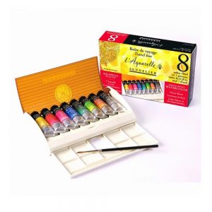 Sennelier of France have newly reformulated their line of watercolors, creating the improved l'Aquarelle French Artists' Watercolors for discerning watercolor artists of any nationality. True to Senneliers roots, the color palette remains that of the Impressionists. Featuring finely ground, lightfast pigments in a smooth gum arabic and honey binder, these watercolors are luminous, vibrant, free-flowing and lustrous and are now available in convenient sets of either tubes or half pans. These great sets are all-inclusive, with colors, brushes, and even fold-out palettes, and are designed to be easily portable painting studios perfect for travel. Designed for adventure, this plastic travel case contains 8 tubes of 10 ml, including Burnt Sienna, Phthalo Blue, Sennelier Yellow Light, Sennelier Red, Opera Rose, Ivory Black, Phthalo Green Light, and Forest Green & a brush.