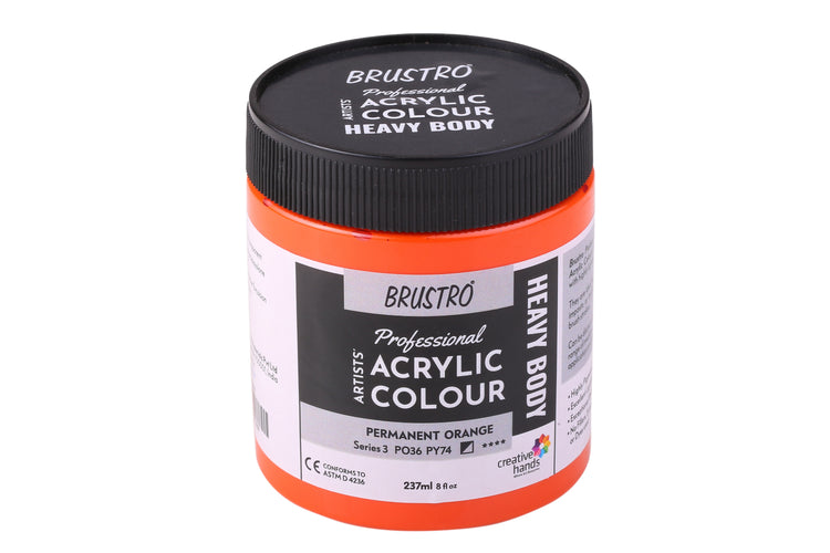 Brustro Professional Artists Heavybody Acrylic Paint 237ml - Permanent Orange (Sr 3)