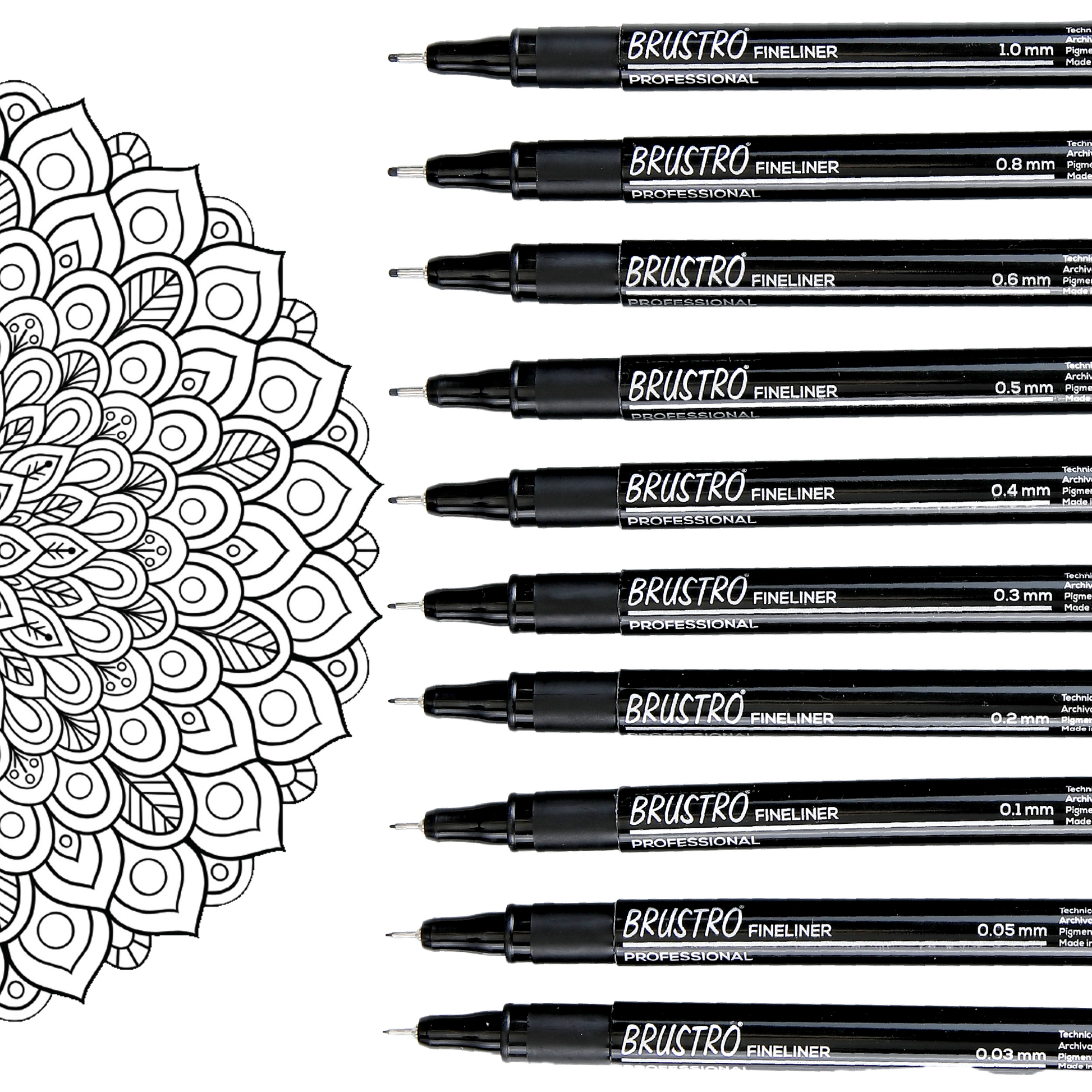 - This set contains 10 fineliners which include: 0.03/0.05/0.1/0.2/0.3/0,4/0.5/0.6/0.8/1 mm (in black ink) .