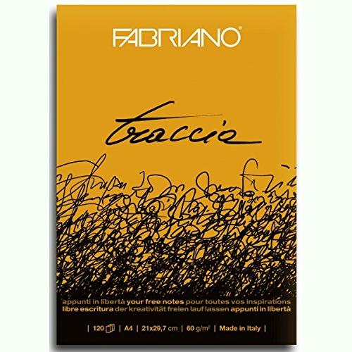 Fabriano Traccia are very fine grain, smooth surface, and is ideal for drawing and writing with ink or ink (pen). These are Paper for calligraphy, notes, sketches and graphics whose transparency also allows tracing. One side Glued notebook consisting of 120 sheets of 60gsm paper. Avialable in 2 sizes in 3 different coloured covers.