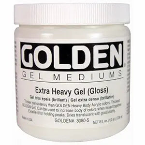 Gel Mediums:offer many ways to build texture. We offer five consistencies from our most viscous Extra Heavy Gel to Soft Gel. Each gel is available in Gloss, Semi-Gloss and Matte finishes. They can be used to create glazes, extend paint and change finishes. Gels are essentially colorless paint, as they utilize the same 100% acrylic polymers as acrylic paint. Gels are also excellent adhesives for collage and mixed media, they dry with excellent flexibility with chemical, water and UV resistance.