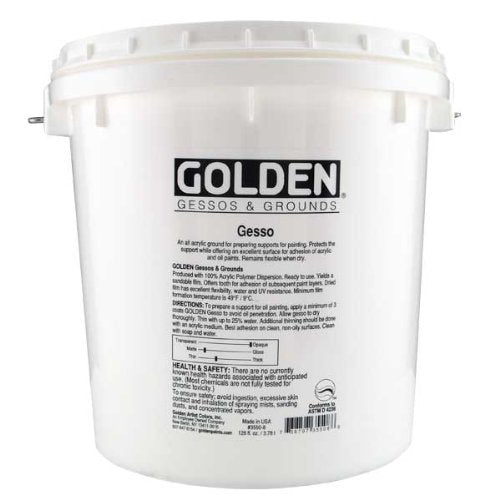 Gesso can be thought of as the bridge between your support (canvas, board or whatever you paint on) and the paint. GOLDEN Gesso is designed to penetrate supports and provide a surface to which paint can adhere. Proper preparation with GOLDEN Gesso increases the life span of artwork. Our Gesso is formulated to be flexible and is highly pigmented for greater opacity.