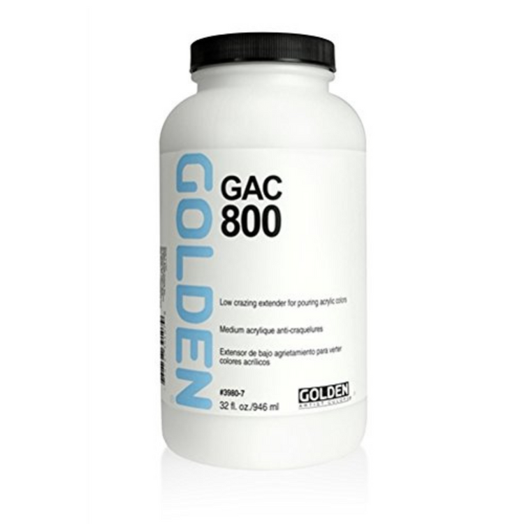GAC 800 ( Pouring medium) is a low-crazing extender for pouring acrylic colors. “Crazing” is the formation of crevices in surfaces that develop as acrylic paints and mediums dry. The addition of GAC 800 promotes drying with a smooth, even film, good gloss, and flexibility, but with moderate clarity. GAC 800 is also useful for adhesion to chalky surfaces