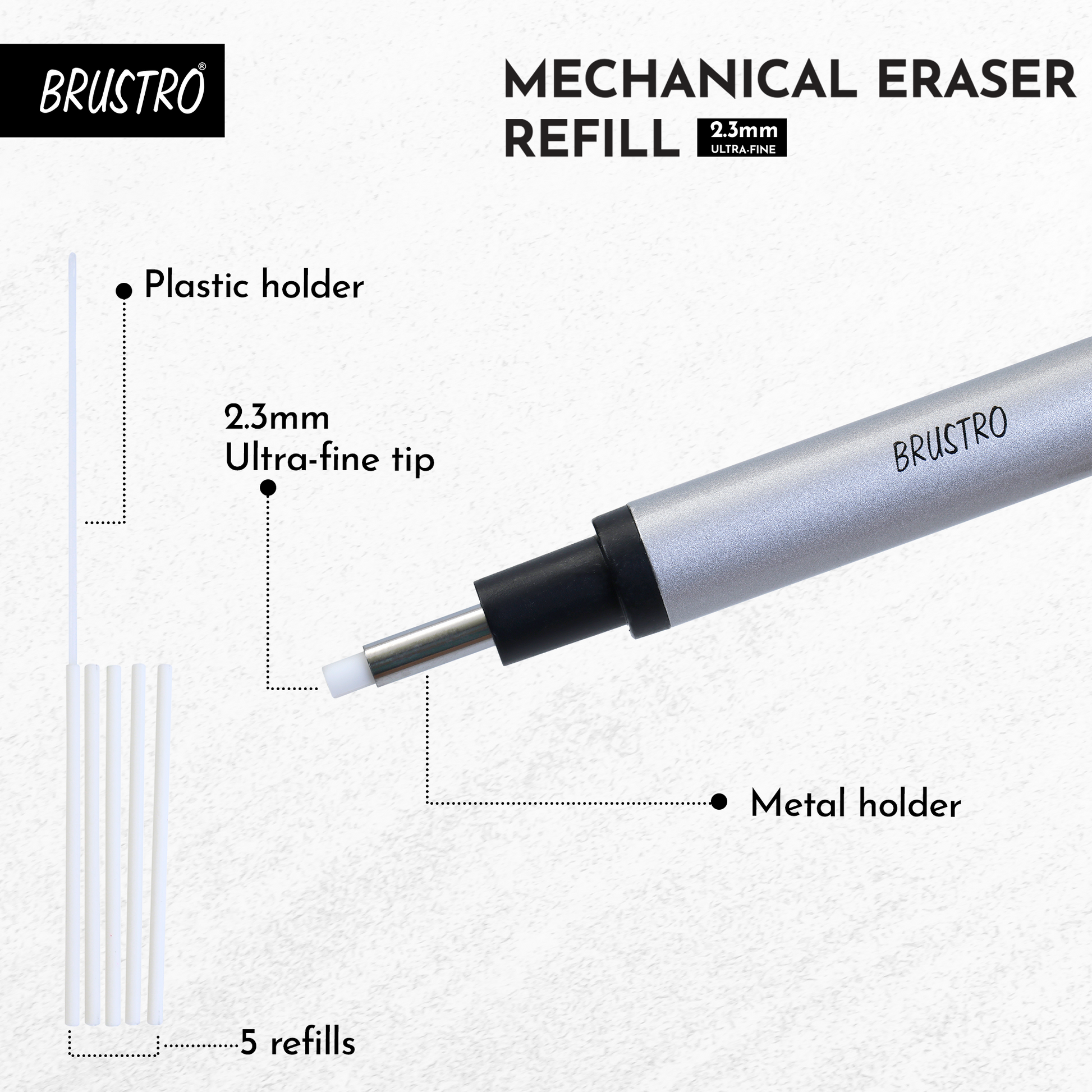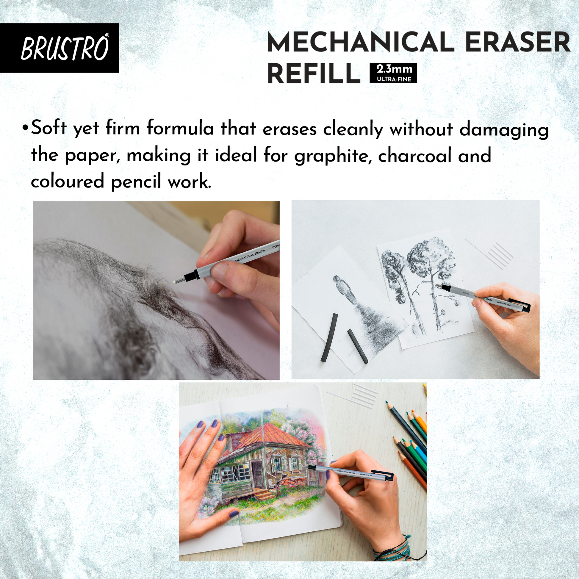 - Designed exclusively for Brustro’s Mechanical Eraser, using a click-based advancement for controlled eraser use.